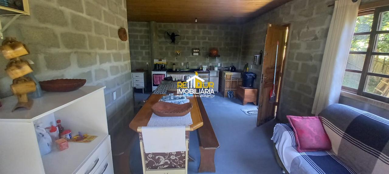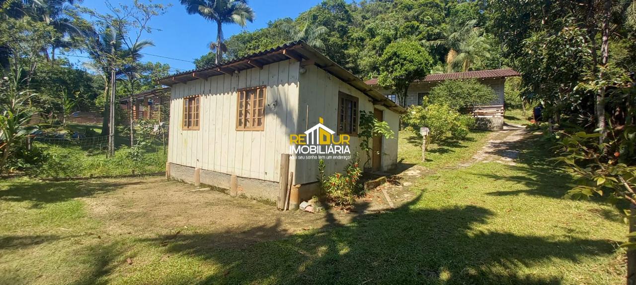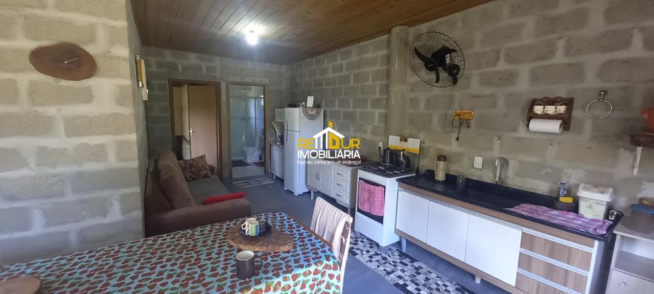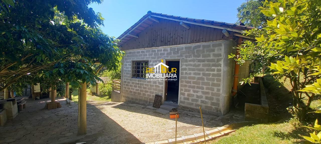 A propriedade conta com duas construções: a casa principal de alvenaria, medindo 10 x 7 m, com 2 quartos/dormitórios amplos, cozinha com fogão a lenha, sala, 1 banheiro e sacada/varanda na parte frontal, sendo vendida mobiliada. A segunda casa é de madeira, mede 6 x 4 m, e possui 1 quarto/dormitório, cozinha e banheiro de alvenaria.