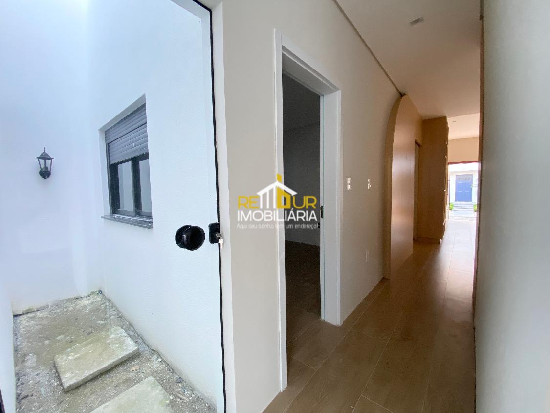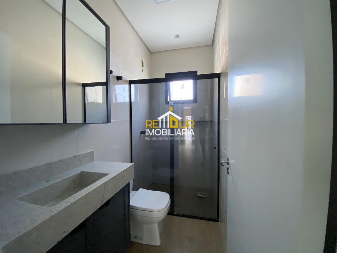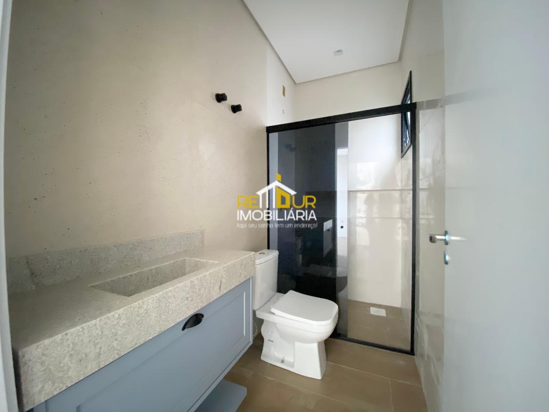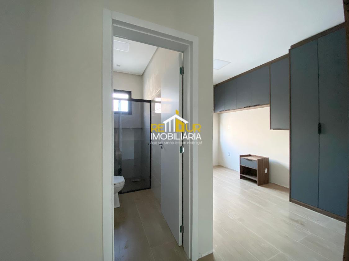 Os móveis contam com mesa embutida para 6 lugares, cozinha com armários, cooktop estilo ilha e pedra, suíte mobiliada com guarda roupa amplo, banheiros com espelho, móveis, Box e pedras, lavanderia ampla com armários, área gourmet interna com churrasqueira a carvão. Conta ainda com piso de porcelanato, persianas embutidas nos quartos, jardim de inverno. Faltam poucos detalhes para concluir a casa, os rodapés serão instadalos e limpeza final será feira para entrega.